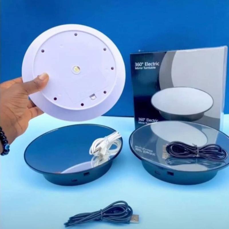 🔄 360° Electric Mirror Turntable – Smooth, silent rotation for full-angle product display and photography.