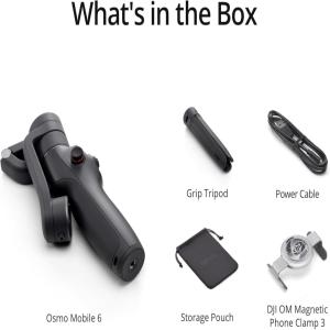 Compact and Portable: Carry your Osmo Mobile 6 on exciting adventures. The compact and foldable design is easy to pack, and with the quick-release magnetic phone clamp, you can get going without the hassle of removing your phone case. Snap-in or out you're ready to shoot or take a call at a moment's notice