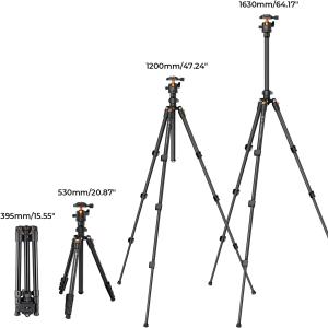 【Lightweight and Portable】4 section leg can adjust tripod height from 20.4''/52cm to 64.1''/163cm; it can be folded to 15.5''/39.5cm to make it easy to put it in the carrying bag; the net weight with the ball head included is only 2.53lbs/1.15 KG.